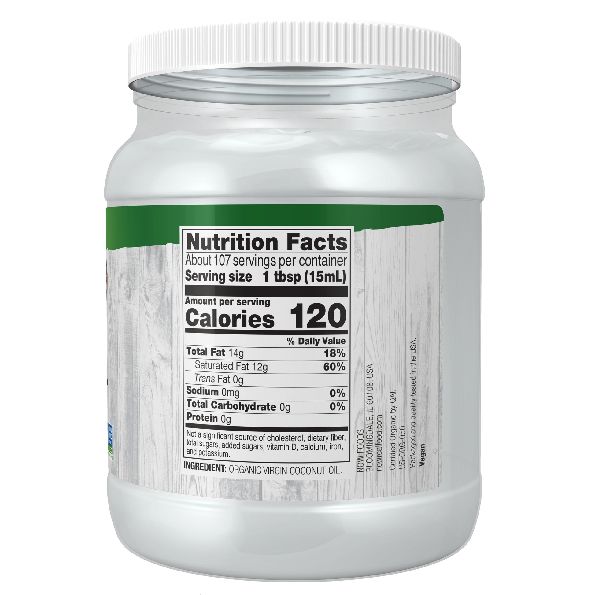 Cold Pressed and Unrefined 100% Pure 64% Natural MCTs* New Look, Same Great Taste! NOW Real Food® Organic Virgin Coconut Oil tastes and smells so good, and is so versatile, nothing else is needed to enjoy the fantastic benefits of this premium-grade nutritional oil. A cold press method is used to preserve the medium-chain triglycerides (MCTs) and fatty acids naturally found in coconuts. This produces an unrefined oil that is bursting with goodness and flavor. Our Organic Virgin Coconut Oil is delicious on its own and makes an excellent addition to recipes. Use it for cooking and baking in place of other cooking oils or add it to your favorite smoothie. Use it as a spread on your favorite breads and muffins or add a subtle hint of tropical sweetness to your popcorn. *This product typically has 64% naturally occurring MCTs (medium-chain triglycerides). See Nutrition Facts for total fat and saturated fat content.